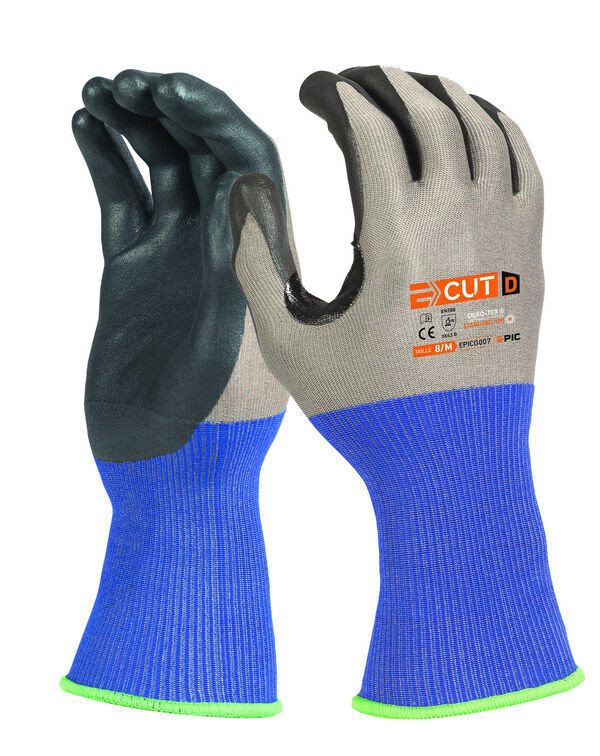 Gants support tricoté 100% fibre Dytec®. Jauge 18. Enduction micro-mousse de nitrile, renfort nitrile pouce/index. Manchette prolongée avec poignet tricot élastiqué. 0% fibre de verre, 0% fibre d'inox pour une innocuité préservée.