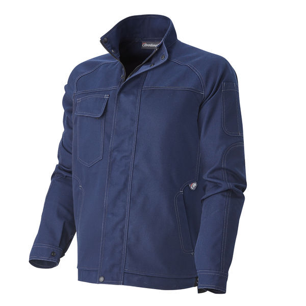 Blouson. Porte badge intégré et amovible. Nombreuses poches, dont 2 poches basses et poche Napoléon. Empiècement d’aisance en bord-côte sur les côtés. Dos couvre-reins.