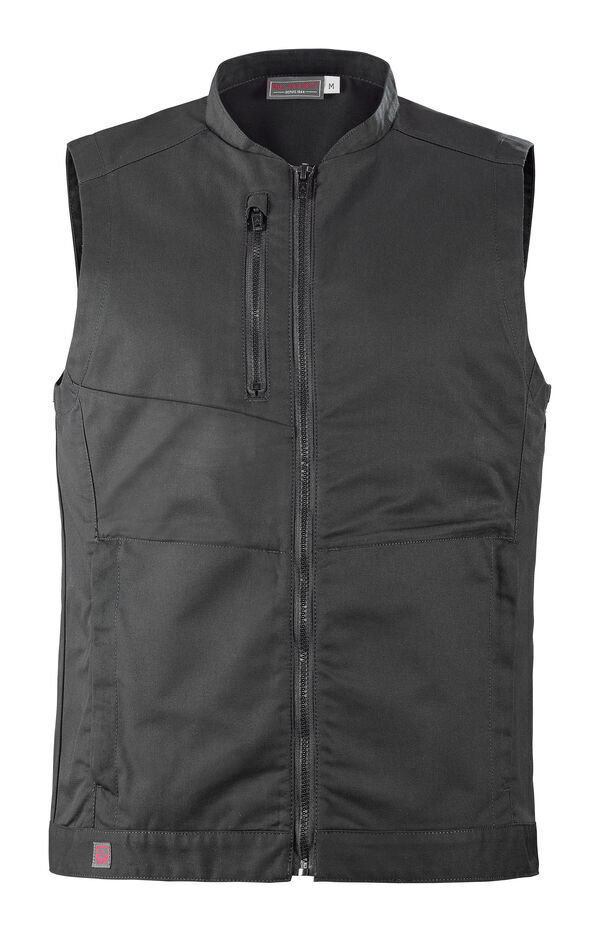 Gilet été. Col cycliste. Fermeture centrale zippée avec sous patte. Poche poitrine fermée par zip. 2 poches basses zippées. Empiècement dos en mesh. | Mercerie tout plastique.