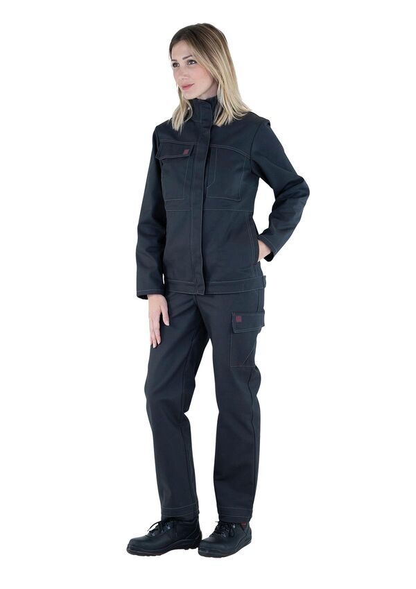 Blouson femme. Fermeture milieu devant zippée sous patte fermée par pressions cachées. 2 poches poitrines dont poche poitrine droite à rabat incrusté et fermée par Velcro® cachés. Poche poitrine gauche avec ouverture verticale fermée par Velcro® caché. 2 poches basses verticales. Ceinture droite avec pattes de serrage réglables par pressions cachées. Manches longues avec bas de manches réglables par pression. | Mercerie tout plastique.