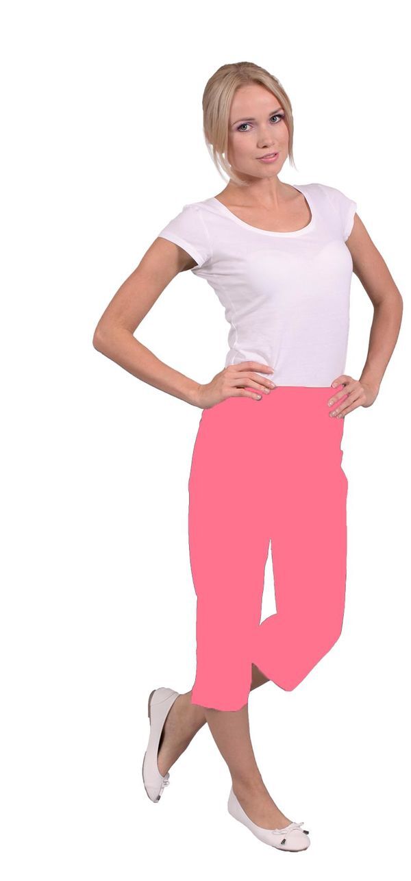 Pantacourt femme. Taille semi-élastiquée effet ventre plat. Sans poche. Fentes latérales bas de jambe. E.J. : 52 cm.