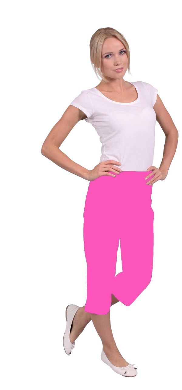 Pantacourt femme. Taille semi-élastiquée effet ventre plat. Sans poche. Fentes latérales bas de jambe. E.J. : 52 cm.