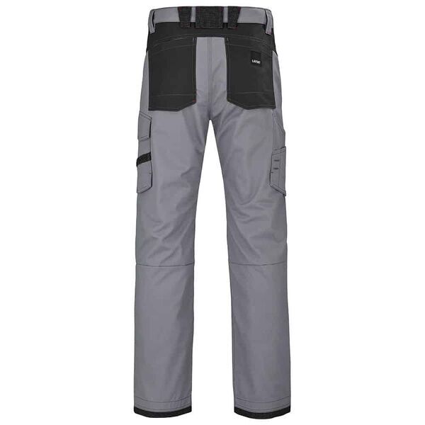 poche avec ouverture verticale zippée. Poches genoux préformées et bande rétroréfléchissante.