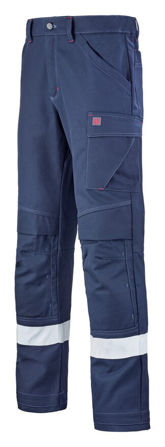 Pantalon à poches genouillères. Ceinture élastiquée côtés. 2 poches italiennes, 1 poche cuisse à soufflet et rabat auto-agrippant et surpoche smartphone, 1 double poche mètre. 2 poches mousses genoux fermées par bandes auto-agrippantes. | Mercerie tout plastique. E.J. : 82 cm (+5 cm).