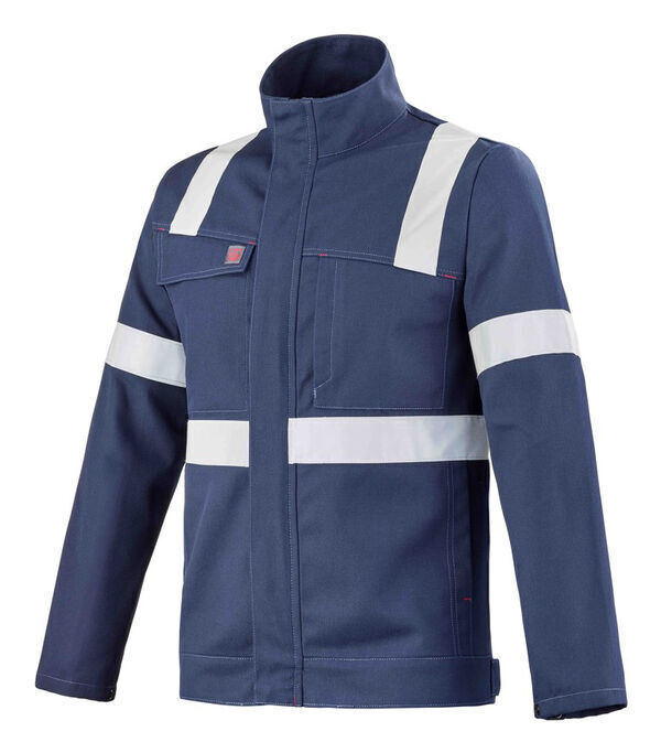 Blouson, col montant. Fermeture milieu devant zippée sous patte fermée par pressions cachées. 2 poches poitrines dont poche poitrine droite à rabat incrusté et fermé par Velcro® cachés. Poche poitrine gauche avec ouverture verticale fermée par Velcro® caché. 2 poches basses verticales. Ceinture droite avec pattes de serrage réglables par pressions cachées. Manches longues avec bas de manches réglables par pression. Bande rétroréfléchissante de 50 mm.