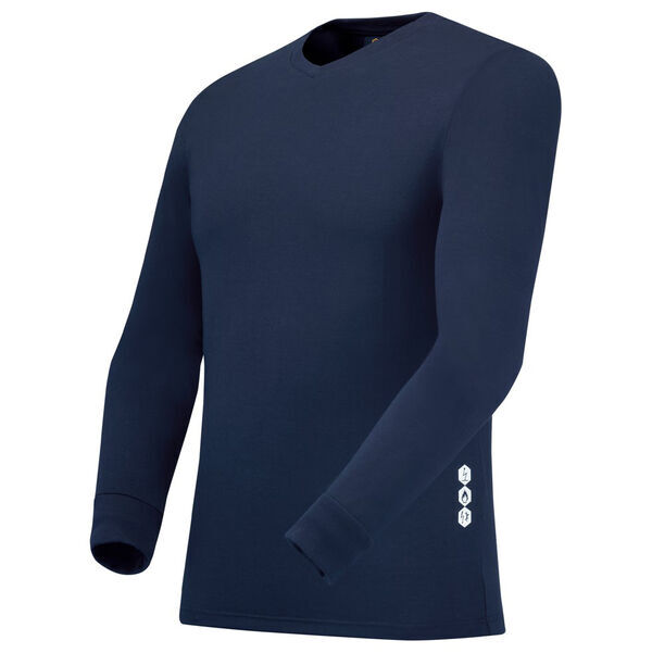 T-shirt thermique à col V en bord-côte. Manches longues et poignets en bord-côte. Finition bas de t-shirt surpiqué.