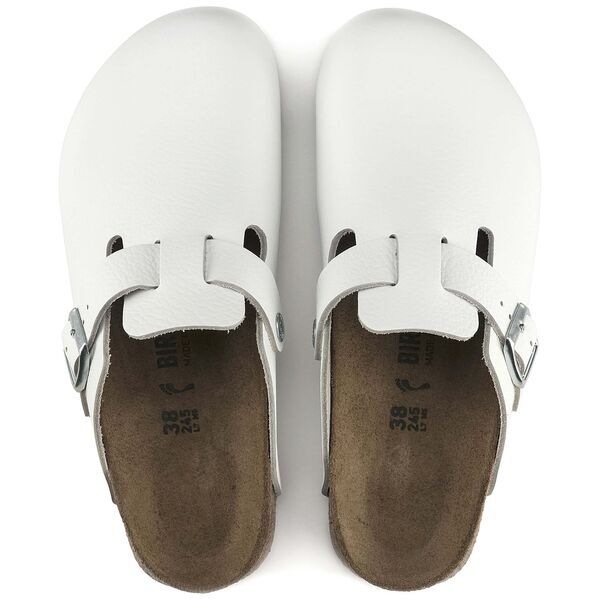 Sabots non sécurité. Tige en cuir. Lit de pied anatomique en liège et latex. Semelle intermédiaire en EVA avec semelle externe antidérapante en caoutchouc.