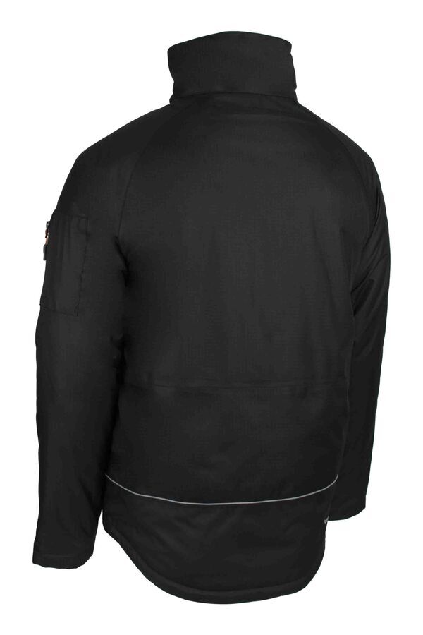 Parka matelassée doublée polaire. Capuche fixe repliable dans le col avec cordon de serrage élastiqué et stoppeurs. Col montant. Fermeture centrale zippée bidirectionnelle avec rabat auto-agrippant et protège menton. Poche poitrine avec zip étanche contrasté. 2 poches latérales zippées sous rabat. Poche manche gauche avec zip étanche. 2 poches intérieures. Passant pour écouteurs à l'intérieur. Bas de manches réglables par pattes auto-agrippantes. Manchons en bord-côte. Taille et bas réglable par cordons élastiques et stoppeurs. Dos rallongés. | Coutures étanchées. Trappe de marquage.