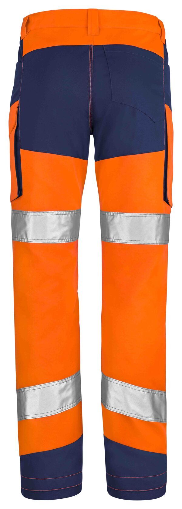 Pantalon haute visibilité. Ceinture élastiquée côtés avec 5 passants. Fermeture à glissière et bouton clou apparent. 2 poches cavalières contrastées. Poche ticket côté droit. Poche cuisses à soufflet sous rabat fermé par bouton caché. Poche mètre à soufflet. Poche dos plaquée. | Bandes rétroréfléchissantes segmentées 70 mm. E.J. : 80 cm (+5 cm). Existe en Ripstop été : 1HVNL