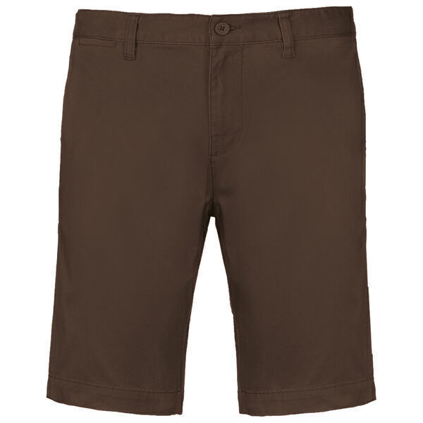 Bermuda chino. Fermeture braguette zippée et bouton cousu. Ceinture avec 5 passants. 2 poches italiennes. 2 poches arrières passepoilées. Finition aux enzymes.