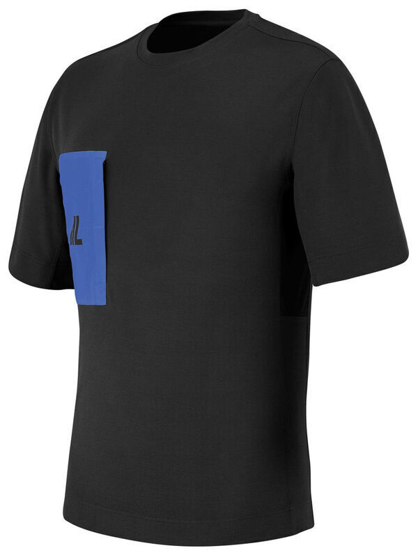 Tee-shirt. Col rond avec bande de propreté. Poche poitrine droite contrastée fermée par fermeture à glissière inversée. Manches courtes. Empiècements filet latéral sous les bras. Découpes cotés.
