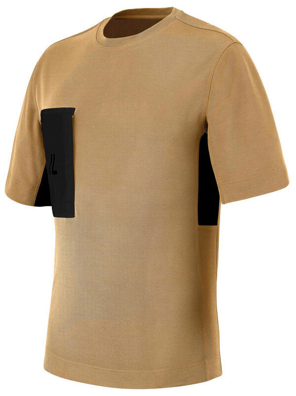 Tee-shirt. Col rond avec bande de propreté. Poche poitrine droite contrastée fermée par fermeture à glissière inversée. Manches courtes. Empiècements filet latéral sous les bras. Découpes cotés.