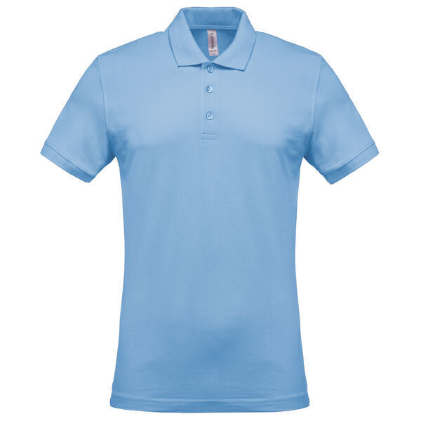 Polo col en bord-côte. Patte de boutonnage 3 boutons. Bande de propreté contrastée à l’encolure. Manches courtes, bas de manche finition en bord-côte.