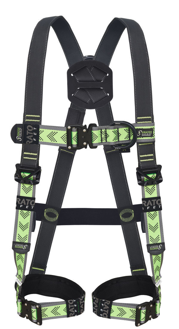 Harnais 2 points à boucleries automatiques : 1 dé dorsal et 1 accrochage sternal. Équipé de sangles élastiques. Sangles de cuisses à l'horizontale pour une liberté de mouvement. | Testé 140 kg.