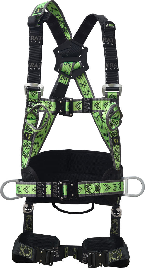Harnais de maintien au travail et d'antichute équipé de sangles élastiques et d'une ceinture rotative à 180° pour une meilleure ergonomie. Boucleries automatiques. Composé de 4 anneaux porte-outils et d'une poignée porte-outils au niveau de la taille. Poids : 2,50 kg.