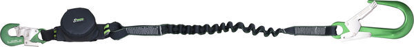 Longe absorbeur élastique avec absorbeur, équipée de 2 mousquetons échafaudage en aluminium et d'un mousqueton double action . Longe en polyester (largeur 30mm) spécial arête vive. Résistance : 6 kN. Poids : 1,11 kg.